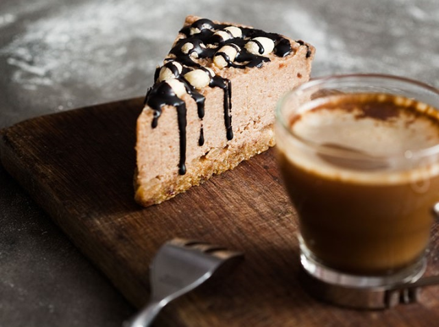 6. A torta összeállításához az egyik tortalapot tálcára tesszük, megkenjük a krém negyedével. Ráhelyezzük a következő lapot, amire ismét krém jön, majd a harmadik lap és újra krém. Végül ráhelyezzük az utolsó tortalapot. A maradék krémmel kívülről is beborítjuk. Hűtőszekrénybe hagyjuk pihenni legalább 4 órát. A tetejét ízlés szerint díszíthetjük durvára vágott dióval.
