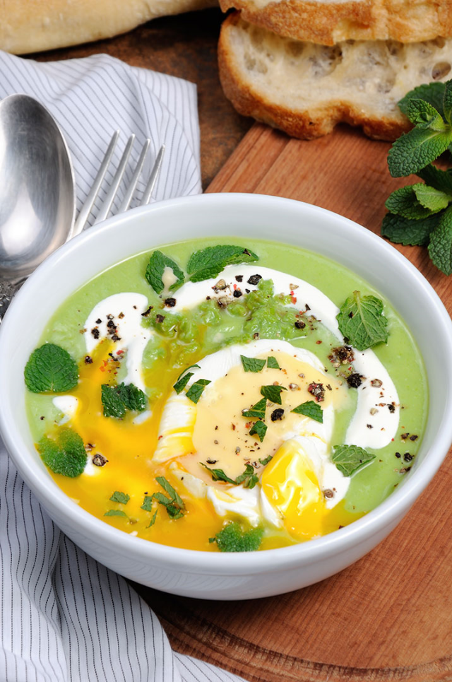 Salátaleves buggyantott tojással