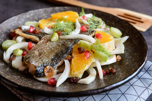 Narancsos-édesköményes saláta füstölt pisztránggal